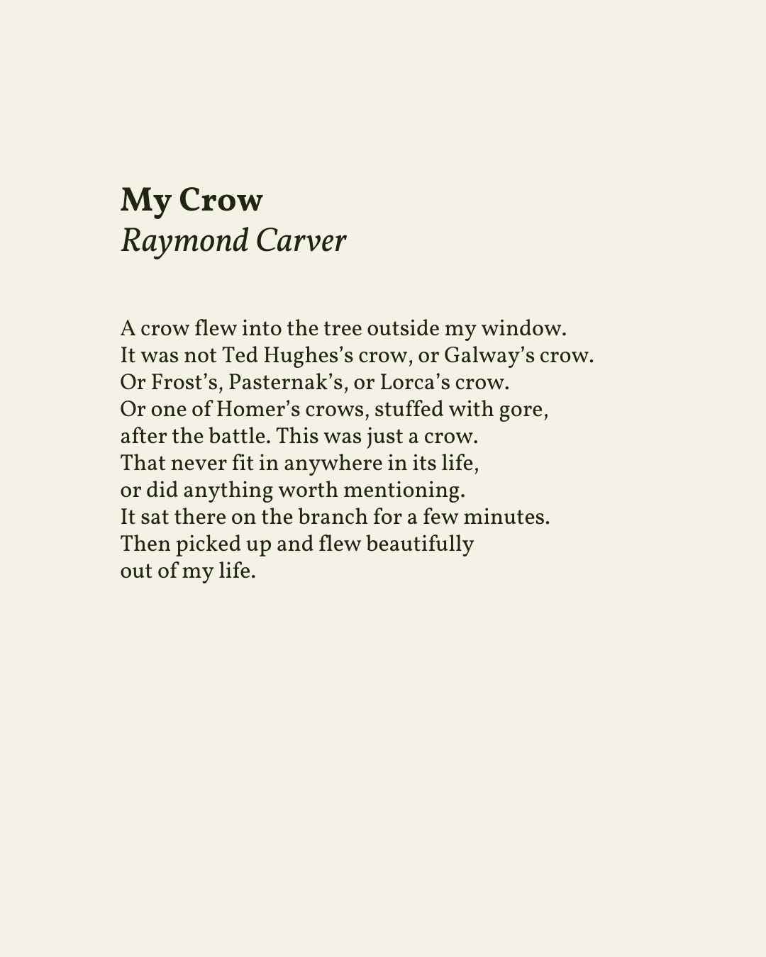 “It sat there on the branch for a few minutes. / Then picked up and flew beautifully / out of my life.” — Raymond Carver